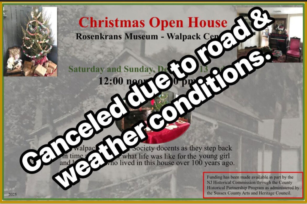 The Walpack Historical Society will be hosting its annual Christmas Open House at the Rosenkrans Museum on Saturday, December 13th, and Sunday, December 14th, 2025. The event will be held from 12 pm to 3 pm on both days. We invite you to join us as we celebrate the start of the 2025 Holiday Season.